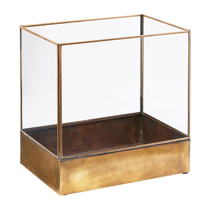 The glass lid allows for a clear view of your displayed items, while the antique brass frame provides a touch of vintage allure. Perfect for displaying jewellery, keepsakes, or small collectibles, this display box adds a touch of refinement to any space. Ideal for those who appreciate antique aesthetics and elegant presentation, the Antique Brass Display Box is both a practical and decorative addition to your home.
