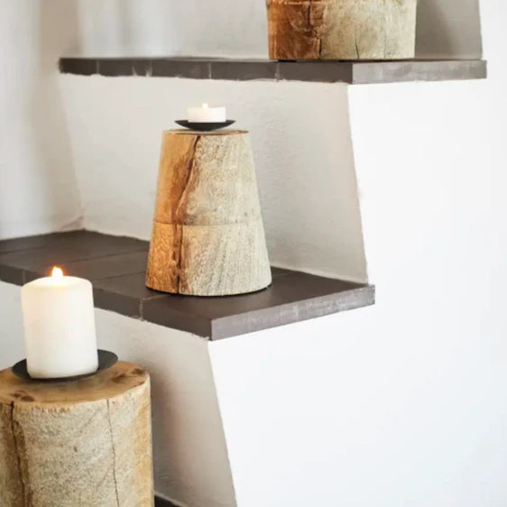 Each holder features a distinctive design and finish, showcasing the creative use of reclaimed materials and adding a charming, artisanal flair to your décor. Perfect for holding tealight or votive candles, this set creates a cohesive look while adding warmth and character to any room. Ideal for eco-friendly living enthusiasts, this set not only enhances your space but also supports a more sustainable lifestyle.